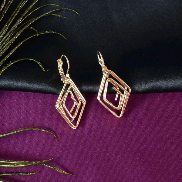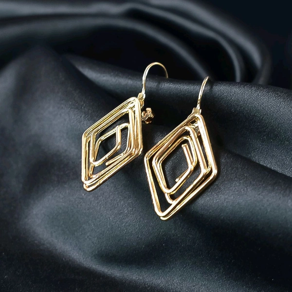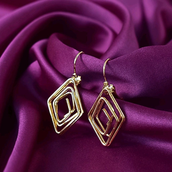 Diamound Shape Gold Plated Modern Design Earrings